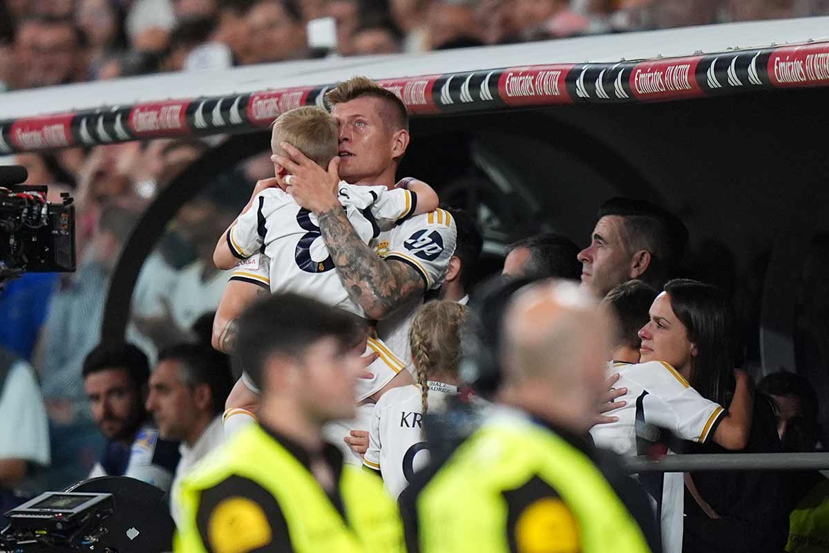 A los 85 minutos, Toni Kroos veía su nombre en el cartelón de cambios y se desplomaba el estadio entre abrazos de sus compañeros sobre el verde, en la zona técnica, en pie, liderados por Carletto, con su familia llorando en el túnel y Antonio, visiblemente emocionado, capaz de no derramar ninguna lágrima, hasta que abrazó a su pequeña. Entonces sí.