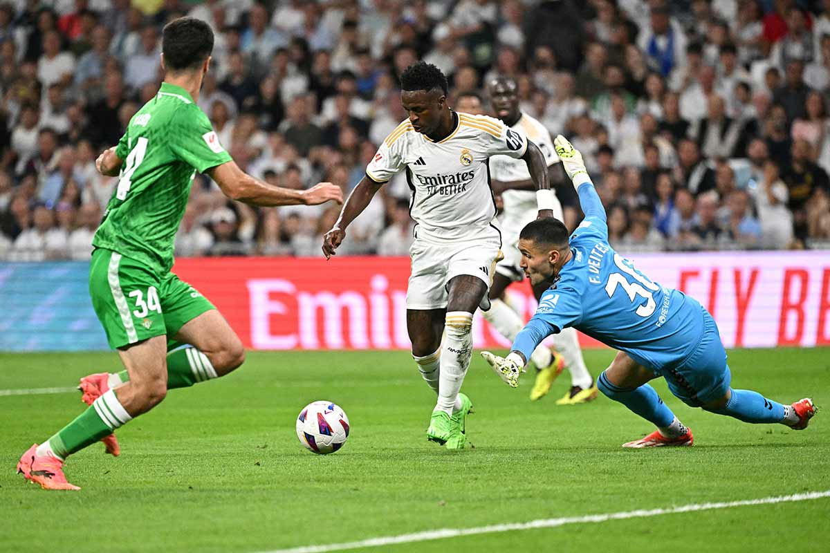 A todo esto, un rival y un partido. Permítanme coger un kleenex que se me ha metido una mosca colchonera en el ojo y nos ponemos con la crónica. Más allá de un te quiero, Toni Kroos, que retumbó a los ocho minutos en el coliseo blanco, el Madrid abandonó todo aire festivo para jugar serio, presumiblemente con los once de Wembley, ante un Betis siempre alegre con el Ingeniero Pellegrini al volante. La agresividad merengue, London Calling, pareció sorprender a los sevillanos, con Isco aplaudido por el Bernabéu, en el banquillo verdiblanco luciendo pata coja, lástima para la Roja. Así, a los doce minutos, Rodrygo desperdició una buena oportunidad ante Vieites, tras pase de Vini y, poco después, el propio Vini vería como el arquero bético le rebañaba el balón de la bota, tras pifiarla el meta y servir esta ocasión de oro a Camavinga. Sokratis, que es zaguero verdiblanco y no filósofo presocrático, sacó bajo palos el disparo posterior de Mendy sin portero.