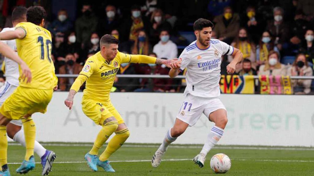 El duelo ganar para el Villareal era claramente el de Samu contra Marcelo. El extremo derecho desbordaba una y otra vez a Marcelo martirizando a un Madrid que hacía aguas por ese costado. El Real Madrid no conseguía salir y no llegaba nada parecido a una ocasión. El Villareal sometía a los blancos y a veces hasta probaba a Courtois, como Lo Celso en el minuto 38. La primera ocasión del Madrid llegó tras un gran pase de Casemiro a Bale. El galés controló bien, pero se encontró a un gran Rulli, que desbarató la ocasión.