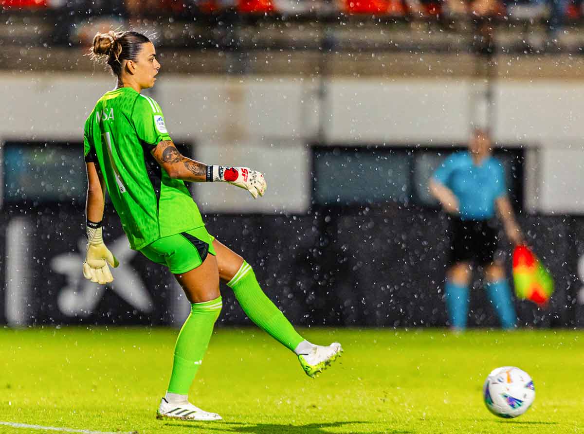 De vuelta de la gira mexicana, y conociendo desde la mañana del viernes que el Valerenga noruego será el último obstáculo antes de alcanzar la fase de grupos de la Champions League, el equipo de Alberto Toril se presentó en Paterna con la única ausencia de Ivana Andrés. Oihane Hernández y Signe Brunn, debutando en partido oficial, fueron las únicas novedades en un once reconocible dibujado como 4-2-3-1. Junto a Sandie Toletti, Teresa Abelleira demostró pronto que sigue manteniendo el gran nivel ofrecido durante el Mundial. Arriba, la hiperactividad de Caicedo y Athenea compensó las sorprendentes imprecisiones de una Caroline Weir algo falta de ritmo y de Brunn, aún por encajar en el sistema.