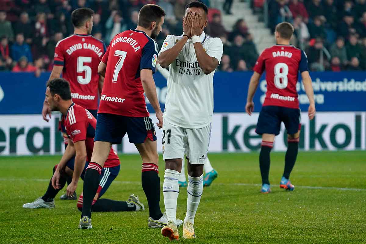 En el 73, de nuevo Vinicius aprovechó un error de otro defensa de Osasuna, pero de nuevo falló ante Herrera.