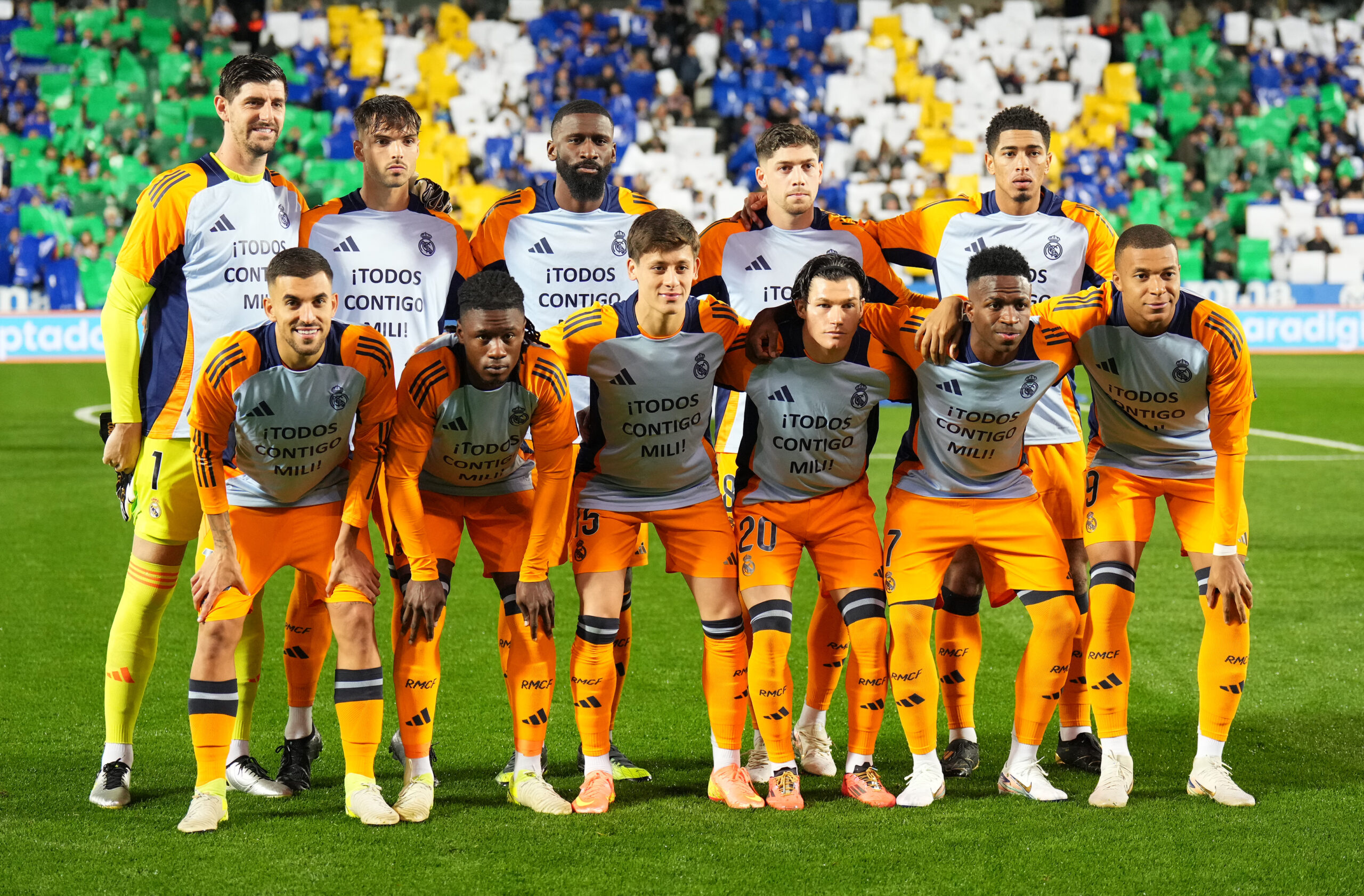 Courtois regresaba al once tras la lesión. Por delante, una defensa inédita: Asencio se estrenaba como titular, Valverde —capitán hoy— ocupaba el lateral derecho y Fran García relegaba al banquillo a Mendy. El Loco Rüdiger cubría la cuota de normalidad defensiva.