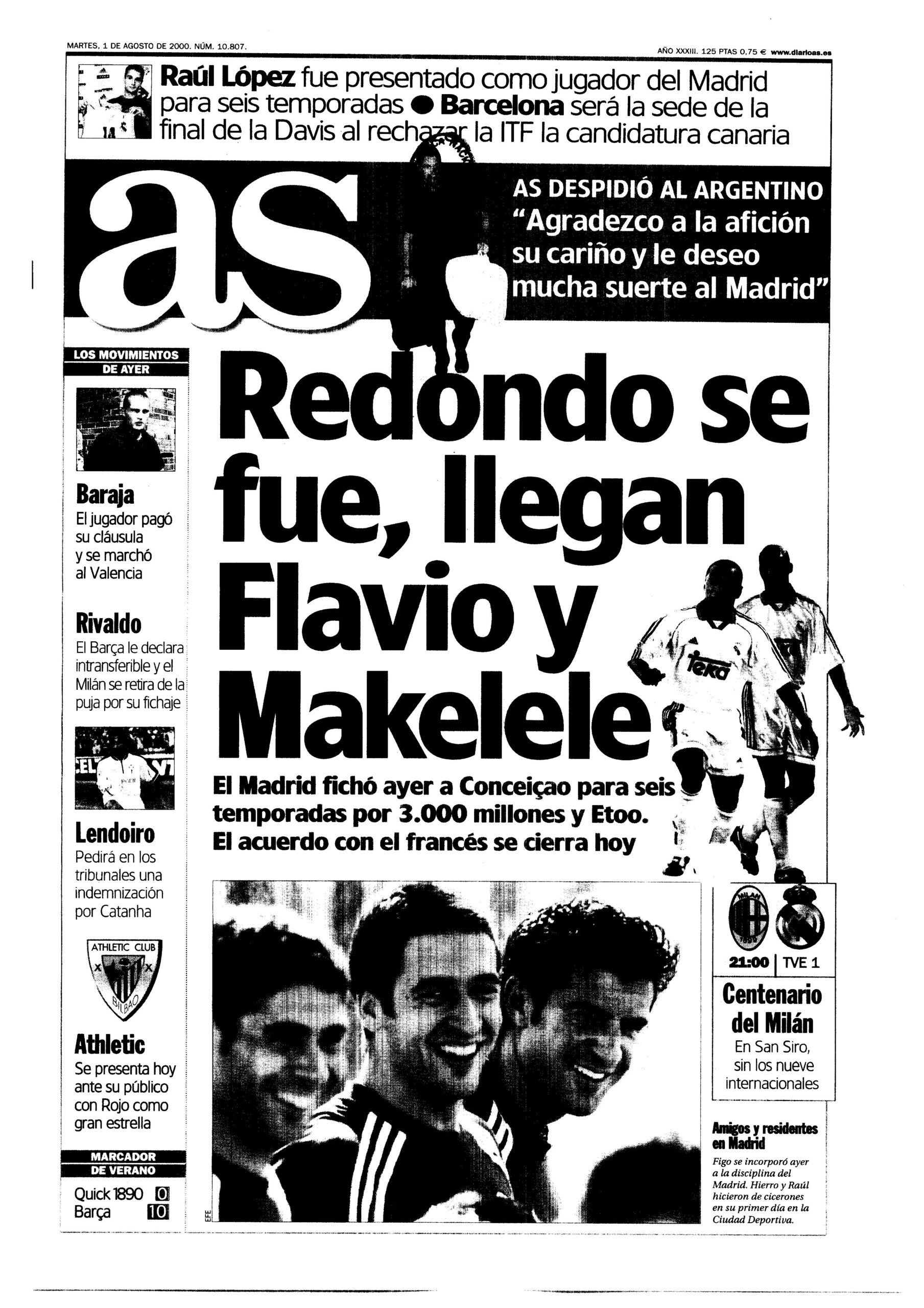 El día 2 de agosto llegó la fumata blanca. A la vez, los merengues también cerraron a Flavio Conceiçao para que ambos jugadores fueran los recambios de Fernando Redondo. Makelele aterrizó en Madrid para el reconocimiento médico con el traspaso entre los clubes cerrado en unos 2.500 millones de pesetas. El francés respiraba tranquilo tras unas semanas complicadas y “contento porque voy a jugar al lado de grandes jugadores”.