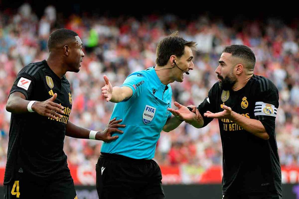 El comienzo fue tan bueno que el Madrid metió dos goles, aunque ninguno subió el marcador. El primero, de Valverde, fue anulado por fuera de juego revisado por el VAR. El segundo, de Bellingham, porque De Burgos decidió parar un contragolpe prometedor del Madrid para atender a Ocampos. Resultó cuanto menos curioso, ya que normalmente no se suele parar el juego en estos casos.
