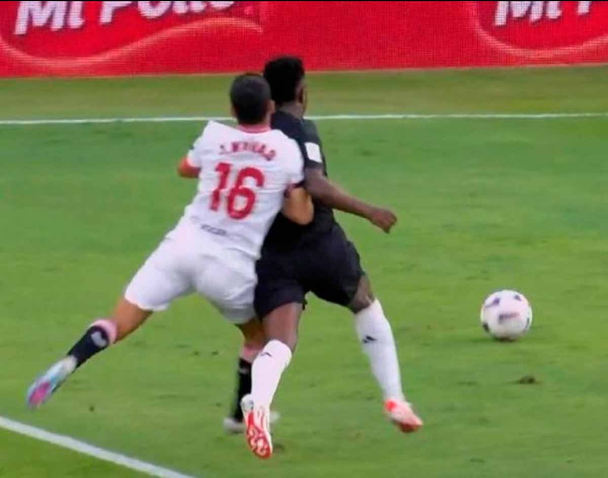 Después un empujón clamoroso a Vinicius dentro del área. Ahí el bar estaría pidiendo una de boquerones en vinagre porque vamos … es un escándalo mayúsculo.