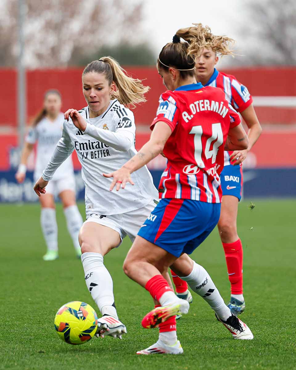 Ante un Atleti necesitado de puntos y con defensa de cinco, Toril volvió a optar por su plan de refuerzo del centro del campo (Melanie Leupolz, Sandie Toletti y Filippa Angeldahl, más Caroline Weir), a costa de decantar todo el ataque por el flanco de Linda Caicedo. Las locales dejaron el balón al Madrid y buscaron el fallo blanco fruto de su intensa presión o el juego directo al espacio con Rash Ajibade. Ninguna de las dos cosas sucedió, puesto que este año las centrales madridistas se llaman María Méndez y Maëlle Lakrar, hecho que redujo en buena medida la tendencia al caos vista en otras citas.