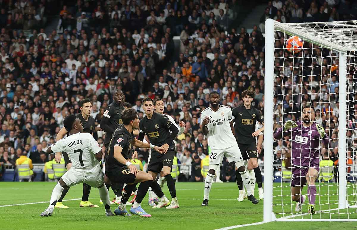 Mbappé, muy activo, con mayor o menor acierto, volvió a chutar y Mamardashvili volvió a repeler. En la siguiente acción, el guardameta envió a córner un centro peligroso de Vini. Y precisamente el siete remachó a gol tras haber peinado Bellingham la botadura del saque de esquina.