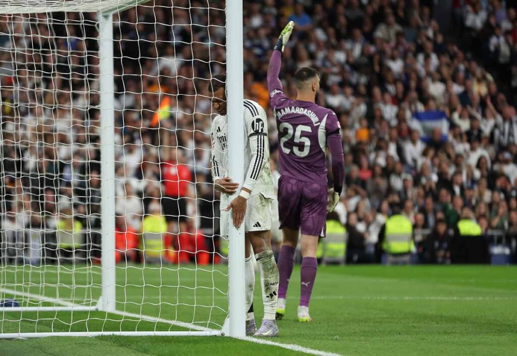 Mamardashvili realizó el habitual milagro de los guardametas rivales en el Bernabéu y despejó un gol imparable de Fede, que había rematado desde cerca y solo una asistencia de Mbappé.