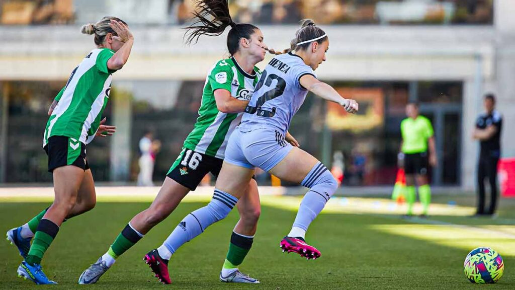 El momento llegó superada la hora de juego y con el carrusel de cambios de ambos equipos en marcha. En uno de los pocos robos adelantados del equipo verdiblanco, el enésimo balón en largo cargado de fe hacia Babajide llegó a la extensísima zona que las centrales madridistas habitualmente reservan a Misa. Y allí acudió la canaria, temeraria y confiada como siempre, en busca del balón. Sin embargo, la inglesa aprovechó su larguísima zancada para ganarle medio segundo a la portera, tocar el cuero antes, y encontrar la meta vacía para poner el 1-0. A la vista de que ni las unas ni las otras merecían los tres puntos, a las madridistas les hirvió la sangre lo justo y necesario para, ahora sí, buscar el gol con interés.