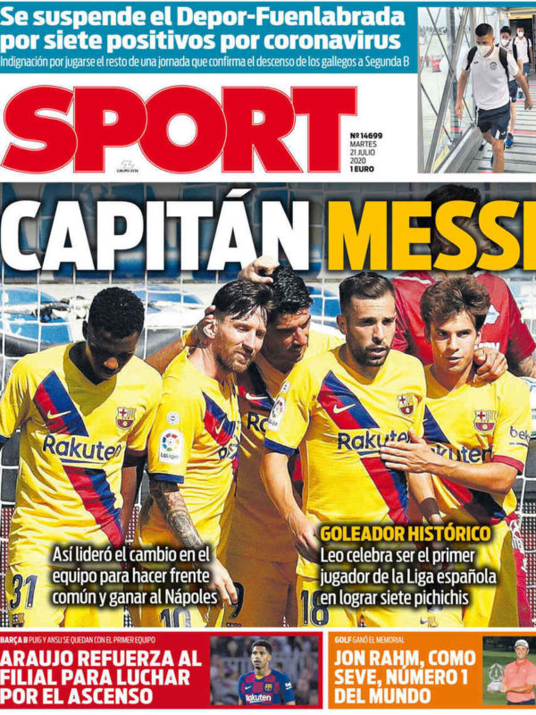El Sport también adopta una actitud tiralevitas con «Capitán Messi» y le ensalza el pichichi. No contentos con eso, resaltan que «así lideró el cambio en el equipo para hacer frente común y ganar al Nápoles». Perdón, lo único que lideró fue la victoria en un partido intrascendente. Extrapolarlo a un frente común para ganar al Nápoles es otro asunto diferente, respeten a sus lectores, por favor.