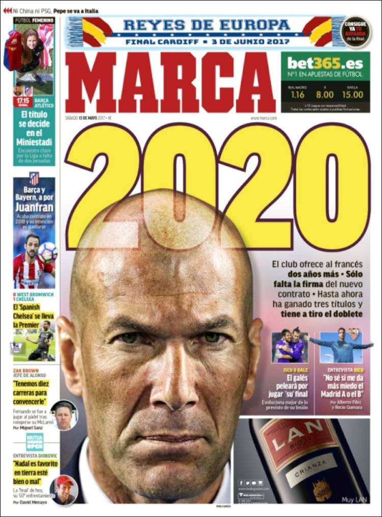 Ustedes, queridos galernautas, tal vez estén celebrando, ufanos e inconscientes, que el Madrid haya llegado por segunda vez consecutiva (y por tercera vez en cuatro años) a la final de la Champions. Puede que, además, a la espera de esa fiesta del 3 de junio, ya velen armas para afrontar el partido de mañana contra el Sevilla, decisivo como todos los pocos que quedan. Tal vez incluso tengan la tentación de pensar que el actual entrenador del Madrid está haciendo bien -y hasta muy bien- su trabajo, razón por la cual se merece -nos merecemos- que renueve su contrato, tal y como anuncia la portada de Marca.