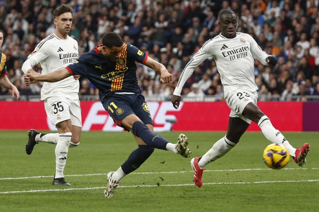 Fue una primera parte controlada por el Madrid, pero en la que el Girona dispuso de dos grandes ocasiones que solventó con brillantez Courtois. La primera recordó un poco a una de las paradas a Salah en la 14, y en la otra se hizo grande ante Van de Beek.