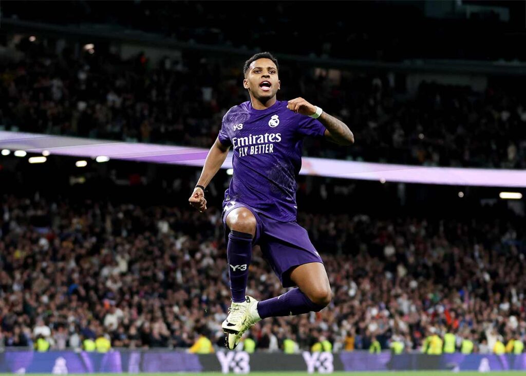 El partido estaba claramente más revuelto y eso siempre favorece al Madrid. Cada vez se generaban más situaciones de transición, pero no terminaba de llegar el segundo. En el minuto 70, Joselu entró por Brahim, que había jugado razonablemente bien. Justo un minuto después llegó el doblete de Rodrygo. Bellingham le vio solo en la izquierda y el brasileño encaró, recortó y definió al primer palo a la perfección.