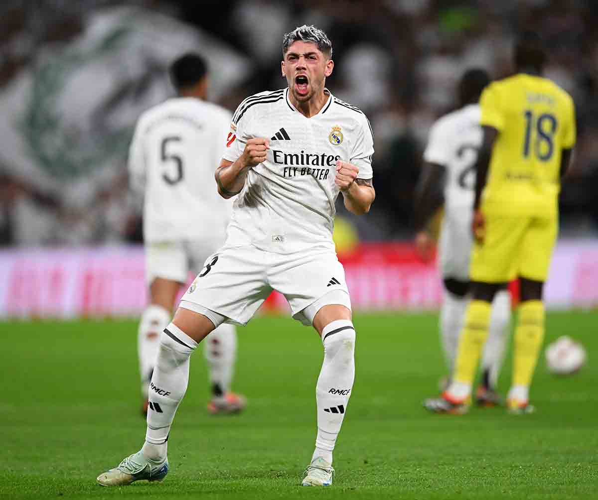 Así las cosas, una vez más el once de Carletto lució una puesta en escena tan pastosa como acostumbra últimamente. Una mousse de chapapote. Ancelotti, tradicional cual carajillo, insistió en su nuevo once de confianza, con Valverde y Jude en los pasillos interiores, percutiendo en el centro con cuarentón Modric -quién los pillara- y Goes en el banquillo. En los primeros diez minutos, apenas un destello de un Bellingham que siempre juega con bastón, bombín y esmoquin, y un chispazo cegador de Vini en su banda; en el lado contrario, los amarillos, con Baena al mando de las operaciones -y de regreso al Bernabéu- acumulaban los avisos en el área de Lunin. No obstante, ante la falta de fútbol y el dolce far niente táctico de su padre, la pizarra de Davide suele ofrecer soluciones. Un córner sacado en corto al filo del primer cuarto de hora, que dejó pasar Bellingham, permitió recibir solo en la frontal al Halcón Valverde, una auténtica imprudencia. El Pajarraco disparó con violencia para, golazo mediante, adelantar al Madrid en el Bernabéu. El balón tocó en alguien y desvió la trayectoria ¿Saben ustedes en quién? Tuvo que ser Baena: justicia poética.