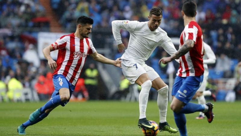 Comenzó el choque con Cristiano saboreando la dulce resaca de su exhibición en el derbi. Marcó dos goles en menos de veinte minutos para relajar a un Bernabéu poblado por paraguas. La afición empezó a pedir el Balón de Oro para su ídolo con el convencimiento de que era un cántico sincero y cargado de argumentos. El 2-0 acompañaba y la tarde pintaba plácida, pero el cielo empezó a caerse sobre el estadio blanco y el Sporting, que ya no tenía nada que perder, creyó que era posible asustar y asustó. Modric perdió el balón cerca del área y Carmona no perdonó el error de un jugador al que nosotros sí le perdonamos todo. El gol desconectó por completo a un Real Madrid que no volvió a engancharse al partido en ningún momento.