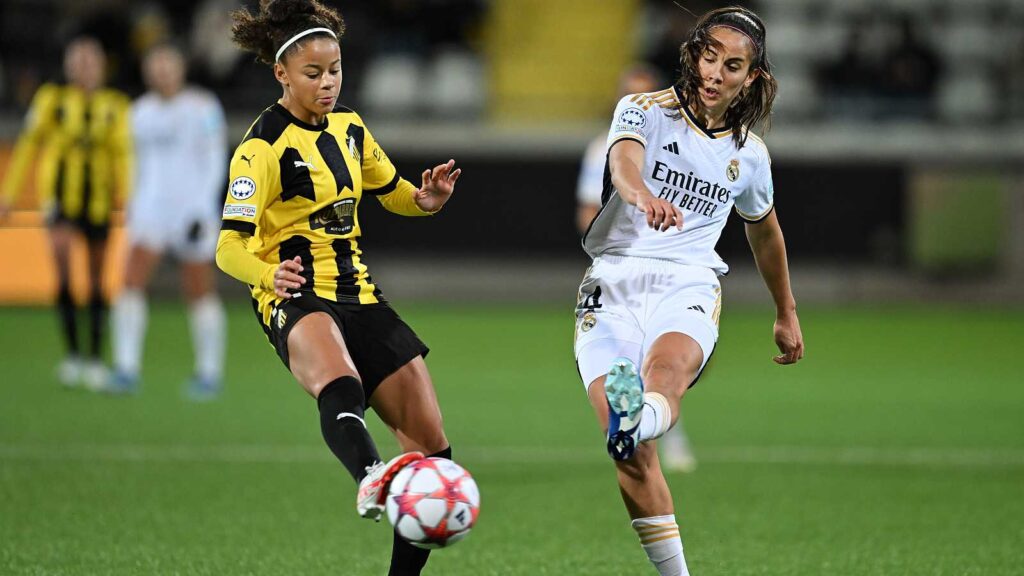 El BK Häcken, líder de grupo tras derrotar al Paris FC en la primera jornada de la Women’s Champions League, se presentó alegre, valiente y confiando en el nuevo estadio de Rambergsvallen. De inicio, el cuadro sueco se afanó en intentar sacar el balón jugado, asumiendo quizás más riesgos de los recomendados, pero las abarrotadas y coquetas gradas del campo no invitaban a los pelotazos indiscriminados. El Real Madrid aceptó de buen grado la propuesta de evitar el barro y los arañazos.