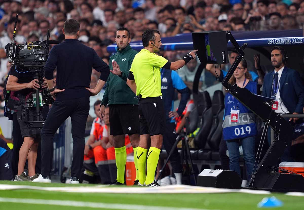 En el 18', Mbappé realizó una pared con Mastantuono y el defensa lo derribó al borde del área antes de que recibiese. Carlos Martínez, y los individuos que lo secundan, con o sin pelo, se abstuvieron de comentar nada, a diferencia de una acción anterior en la que se desgañitó pidiendo falta de Carvajal sobre Weah. Muy profesional, Carlos, muy profesional.