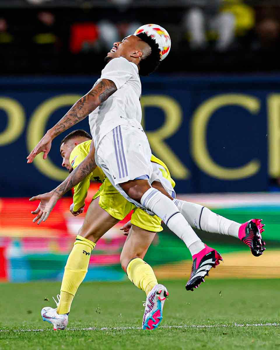 El Submarino Amarillo capitaneado por un siempre rabioso ante lo blanco Parejo, súbitamente, se veía engullido por un nuevo maelstrom de juego merengue. Jörgensen, su portero, tembloroso en un tan desafortunado como arriesgado intento de quiebro, estuvo a punto de regalar el segundo a Vini. Un Asensio, supervitaminado y supermineralizado, lo intentó con una falta desde cerca; pero fue Ceballos, el hombre del partido, quien enroscó un balón al centro del área castellonense donde aparecería Karim para propiciar el empate.
