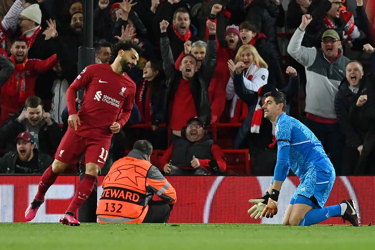 Pronto, muy pronto, golpearon los muchachos de Jürgen. A los tres minutos, un pase cruzado, raso, certero, infecto y letal de Salah fue coronado con un virtuoso taconazo de Darwin Núñez. El gol inflamó Anfield y el Madrid, aseado con el balón pero bisoño en defensa, sufrió la clásica tormenta roja de los reds. El Liverpool atravesaba la medular del Madrid como cuchillo en la mantequilla, fácil de untar, como Enríquez Negreira, ya saben amigos galernautas.