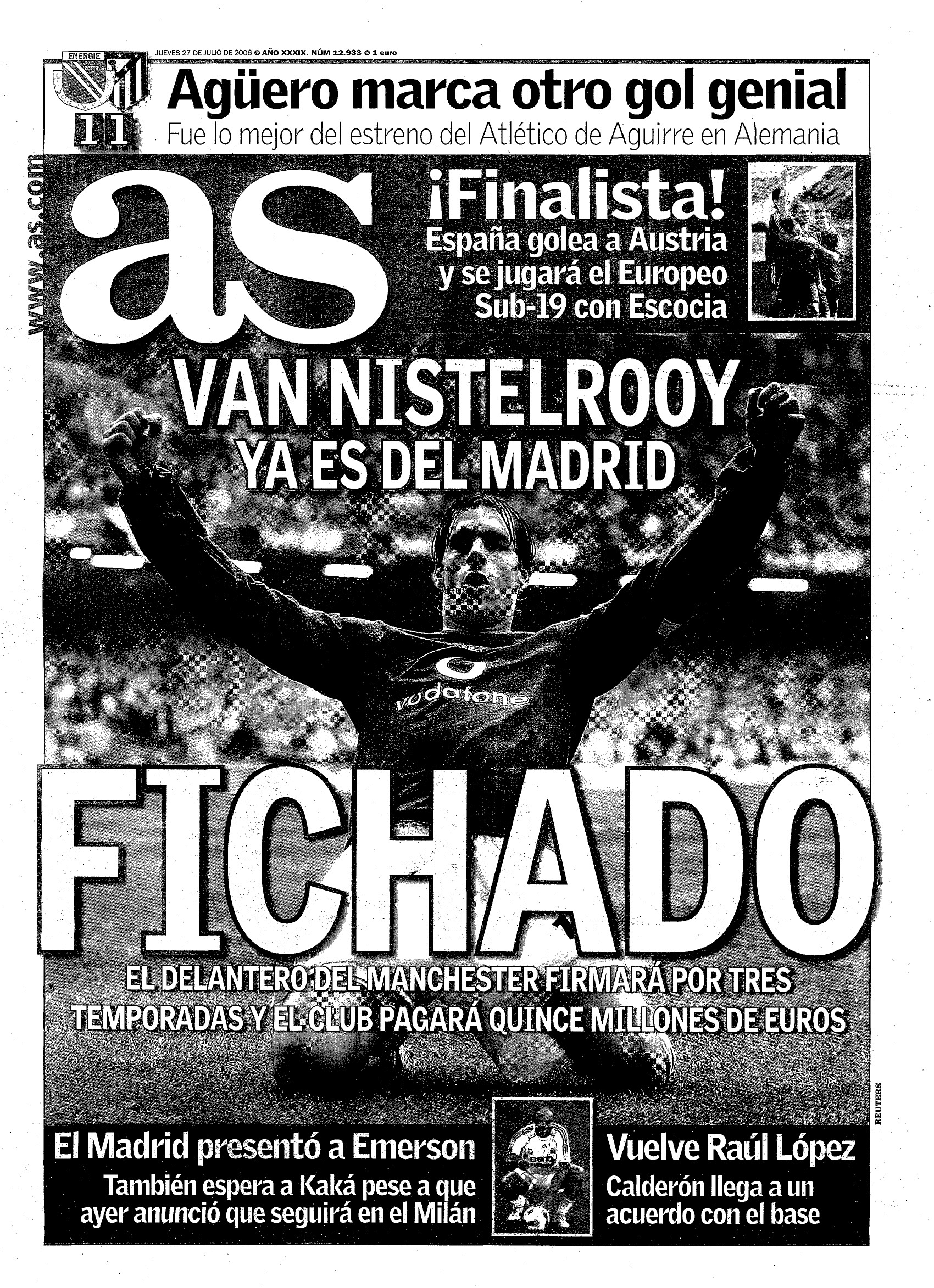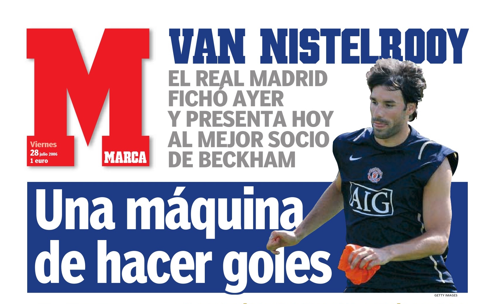Mijatovic y Capello lo vieron como un complemento de Ronaldo Nazario aunque finalmente terminó siendo su sustituto en la delantera madridista. Antes de llegar ellos dos y Ramón Calderón, ya surgió en la prensa su nombre relacionado con el equipo blanco. En ‘MARCA,’ el 19 de abril, José Félix Díaz apuntaba que Van Nistelrooy había sido ofrecido al Madrid y que el neerlandés quería dejar el Manchester United. El delantero soñaba con jugar en el club blanco y consideraba que su ciclo con los ‘red devils’ había terminado.