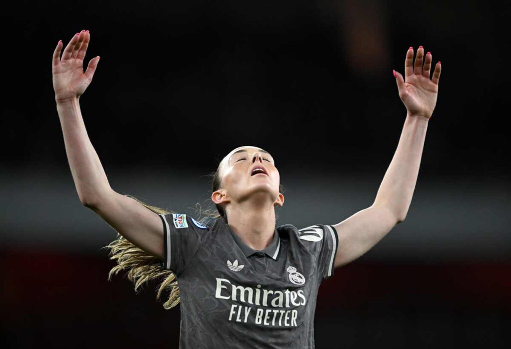 Del lado londinense, además, entraron cuatro modificaciones con respecto a la ida para elevar el nivel de su equipo, todas decisivas a la postre: Daphne van Domselaar en portería, Frida Maanun como centrocampista extra —las de rojo ganaban una al tiempo que las blancas perdían otra— y Chloe Kelly y Caitlin Foord arriba, viendo recompensada su buena actuación en el tramo final en Madrid. Calidad, acierto y suerte aparte, ahí estuvo el partido y la eliminatoria. Mientras el Arsenal gestionaba con comodidad sus minutos con balón, el Real perdió una tras otra cada una de sus posesiones: no encontró lucidez en las combinaciones desde atrás y regaló un saco completo de bolas intentando salir por arriba.
