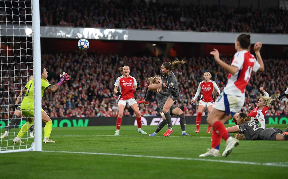 Aunque el Madrid había conseguido escalar hasta llegar a un campamento base que creía fuera de su alcance —y el mérito será valioso en el futuro—, el momento de la eliminatoria se asemejaba más al mundo real, donde no hay vidas extra ni próximas temporadas. Encaramadas con orgullo al borde de un precipicio demasiado alto, las futbolistas del Real entendieron de improviso que el oxígeno en la reserva no les daría para seguir subiendo ni para volver hacia atrás. Así que, mientras meditaban sobre la muerte dulce, el Arsenal repitió su movimiento exitoso por la derecha tres minutos después: centro de Kelly sin molestias desde la derecha y remate en el área, esta vez de Mariona Caldentey entrando sin marca en segunda oleada.