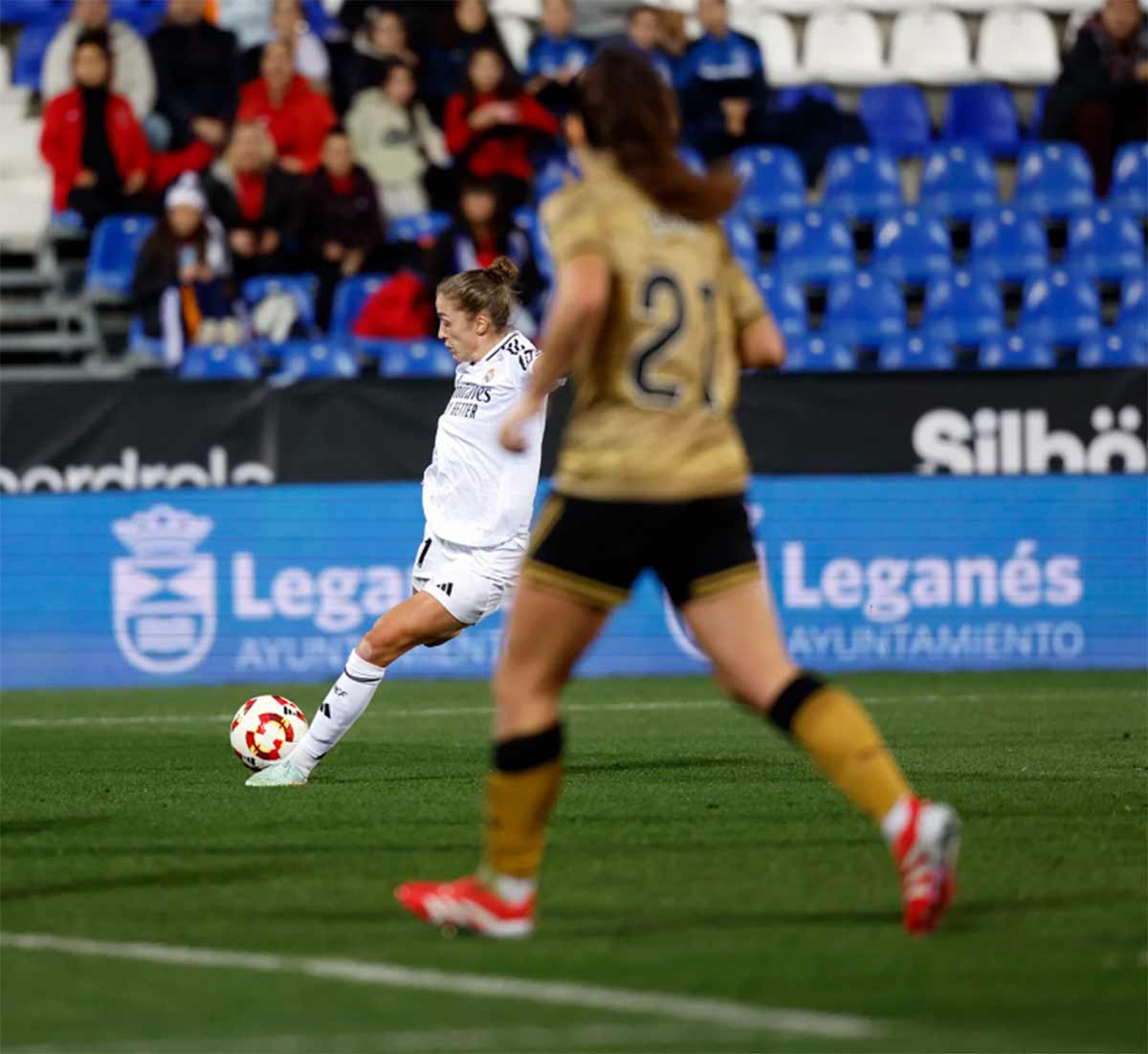 Apenas había comenzado a fluir el fútbol y poco después pudo comprobarse que, tan pronto como era, ni siquiera la línea defensiva blanca había llegado a situarse en el campo. En cuanto la Real apretó en la mitad contraria y Nerea Eizagirre probó a mandar un balón largo hacia el espacio, cada pieza madridista salió en la foto ubicada a una altura diferente. Con el fuera de juego desbaratado, Amaiur Sarriegi hizo todo lo que se le pide a una atacante: tirar el desmarque al espacio, avanzar hacia la portería, superar a la portera y rematar con efectividad y sin alardes. A falta de misterio sobre el nivel de cada equipo y sobre el nombre que quedará grabado en la copa, el público de Leganés vería recompensado su apoyo al fútbol femenino con un puñado de goles.