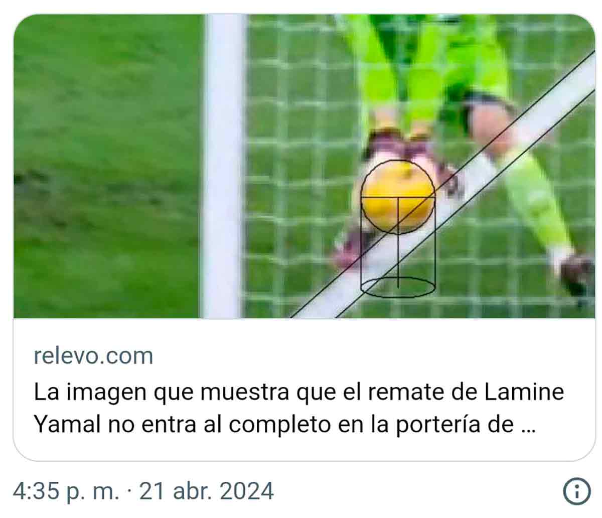 Marca menciona también las quejas, ruines e hilarantes, de Xavi Hernández a cuenta del no-gol fantasma de Lamine del que habla todo el mundo, y si habla todo el mundo es sólo porque Xavi, tan dueño del relato como de absolutamente nada más, se ha empeñado en que así sea. Diferentes medios demostraron al término del partido que, aunque por poco, el balón no había traspasado del todo la línea de portería de Lunin.