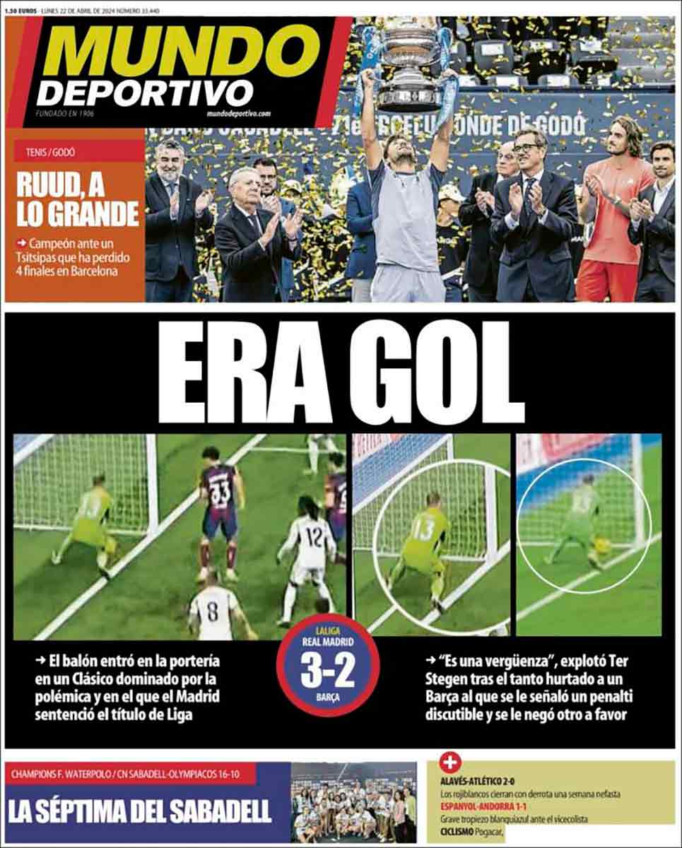 Nos lo podían poner un poco más difícil para rebatírselo. De otro modo, restan alicientes a la elaboración de este portanálisis. "Era gol", asegura Mundo Deportivo. No, no lo era. Lo acabamos de demostrar. ¿Pasamos a otra cosa?