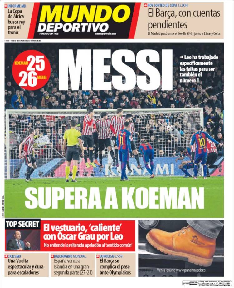 Verdaderamente, la prensa catalana habla de asuntos de mucha más enjundia y seriedad que en efecto, como estaba previsto, reponen tu saber estar. Messi ha superado a Koeman como hacedor de goles de falta en la historia del Barça y el holandés le felicita. Vas en el metro leyendo las portadas del rinconcito y te lo repites, mascullando entre dientes: