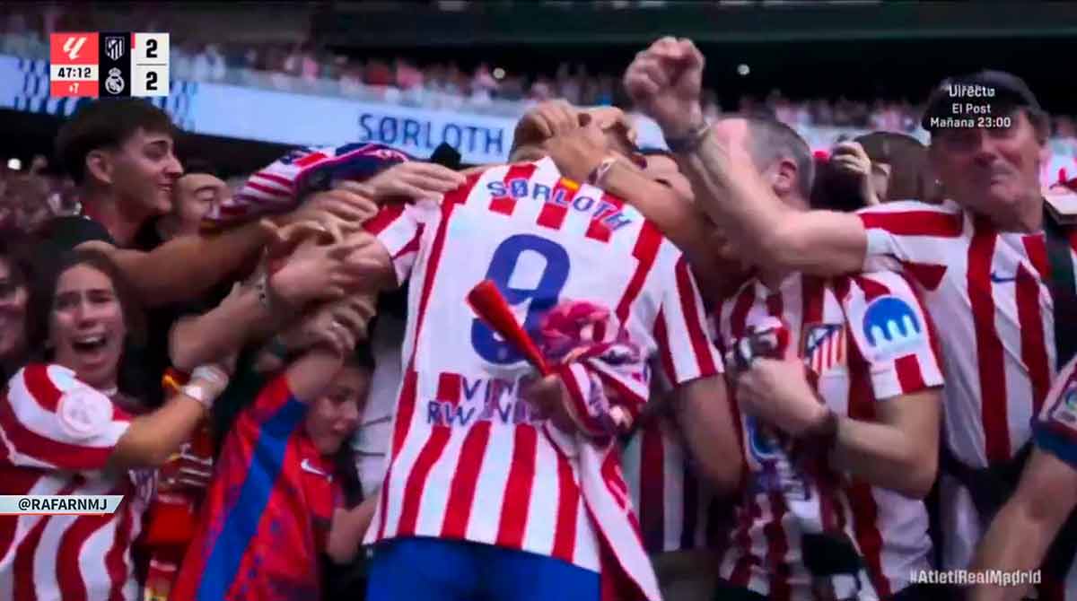 Antes del descanso, una gran combinación entre Vini, Carreras, Bellingham y Güler concluyó con el esférico muy por encima del travesaño. Y en el 47, apoteosis en la narración, cabezazo de Sorloth y gol. Esta vez quien no llegó a despejar fue Huijsen. Muy flojo el Madrid por alto y el Atleti lo estaba aprovechando. El goleador se abrazó con la grada, pero no vio la segunda amarilla. Por lo que sea.