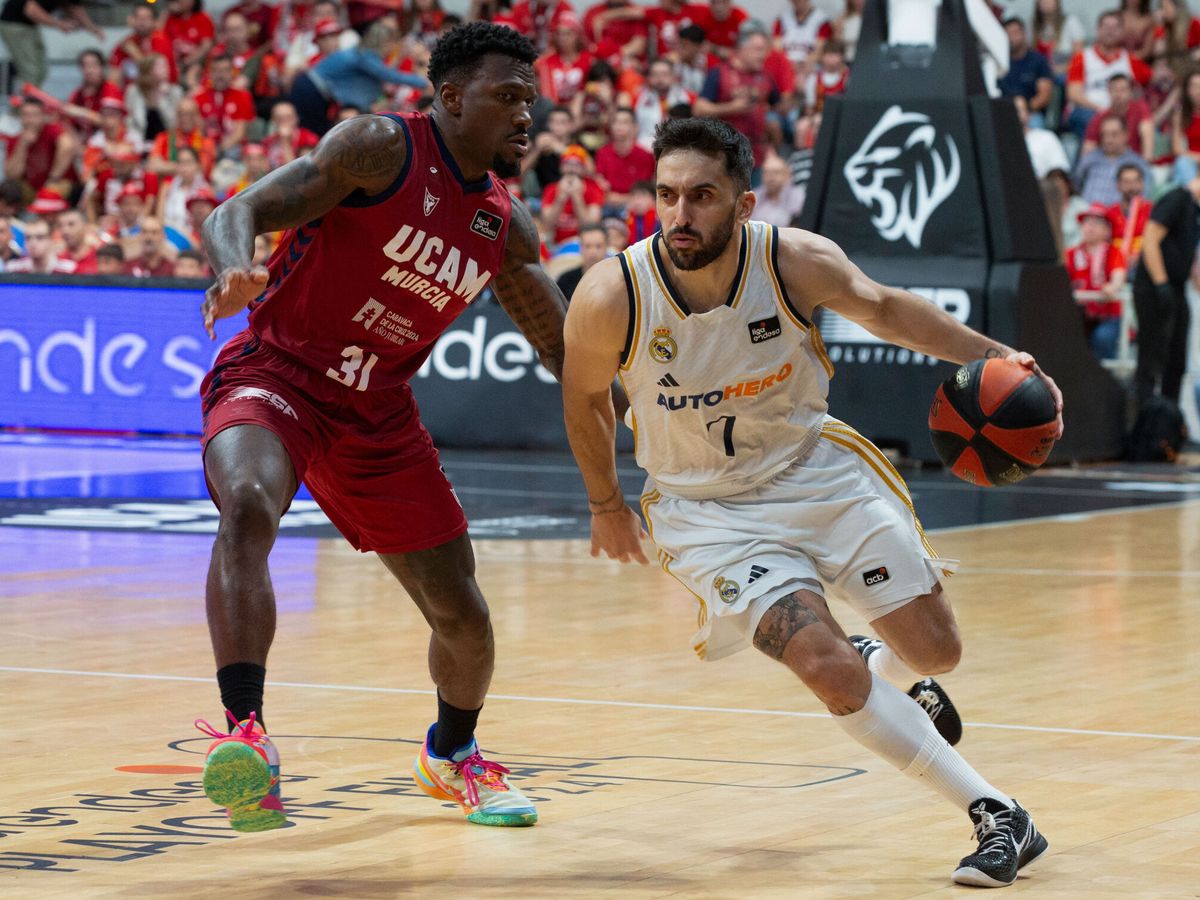 En presencia de toda la corte de la noble región de Murcia, en un pabellón colorado cual pimentón embravecido, el tercer encuentro por el título de la Liga ACB ante el aguerrido UCAM no pudo empezar mejor para los merengues. Musa, el mejor hombre de ChusMan en esta eliminatoria, inauguraba el electrónico con una penetración con sello Dzanan. Poco después Super Mario desde la isla de Yoshi ponía el 0-5. Sito Alonso apenas tardaba un minuto y medio en pedir tiempo muerto. A buen seguro que entonces sobre el parqué el técnico de UCAM recomendó a sus jugadores una buena dosis de palos.