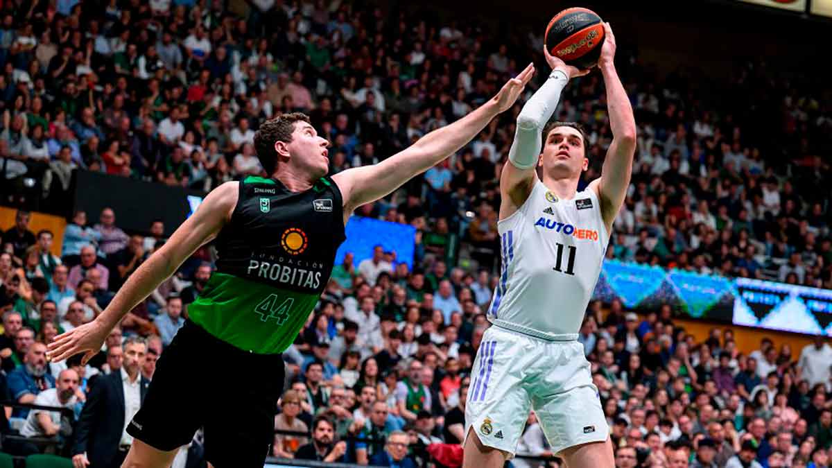 La incertidumbre de la serie duró hasta el principio del cuarto cuarto del segundo partido disputado en el Wizink. El Madrid apretaba de lo lindo en defensa, con el mejor partido de blanco de Yabusele, y los verdinegros se desplomaron en gran parte por los nervios de su buen técnico, Carles Durán y, sobre todo, de su veterano pívot, Ante Tomic, que se autoexpulsó tras una falta intencionada clarísima (codazo a Yabusele) y otra casi acto seguido.