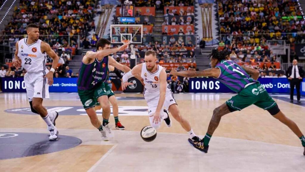 El partido comenzó como se esperaba, con una clara primacía de las defensas sobre los ataques. El Unicaja es un conjunto agresivo, al que no le importa cometer personales a cambio de incomodar constantemente el juego rival: lo fundamental radica en que no se pueda pensar con claridad. El Madrid, conocedor del barro al que iba a ser obligado a bajar, no se achantó de inicio. Mateo introdujo en el cinco de salida a Abalde y Ndiaye, y un Tavares especialmente fajador consiguió sacar varias faltas a Sima y al resto de pívots malagueños en los primeros minutos. Los blancos demostraron concentración y buena actitud, renegando de su tendencia del otoño pasado a presentarse en los partidos al estilo flâneur.