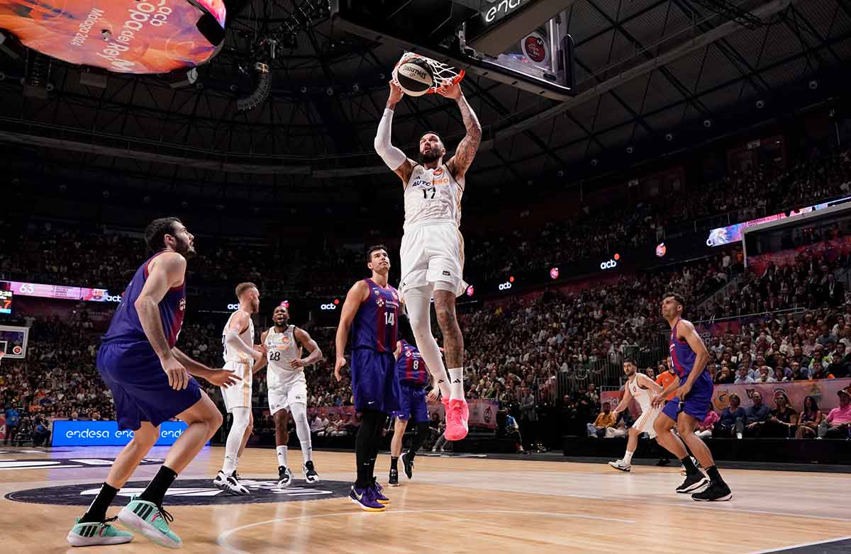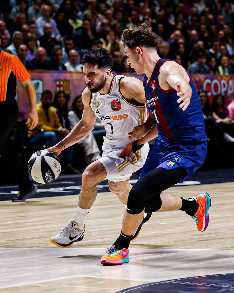 Si me permito alargarme con estas reflexiones es porque la final tuvo menos historia de la que se esperaba. Es cierto que el Barcelona salió dispuesto a dar guerra, probando algunas opciones interesantes: la titularidad de Da Silva —llegó a estar emparejado contra Campazzo en algunos momentos, al inicio—, la colocación de dos generadores para intentar hacer daño al Madrid, el truco de sacar a Tavares de la cueva con Vesely… En el segundo cuarto, los porcentajes de acierto exterior amagaron con una posible ruptura del encuentro a favor de los culés, y en ese instante decisivo el equipo se sostuvo con unos buenos minutos de Hezonja —no debe enfadarse por su menor protagonismo en el choque: aquí queda escrito que volverá a ser decisivo en el resto de títulos de la temporada— y en la colosal actuación de Poirier, probablemente el auténtico MVP.