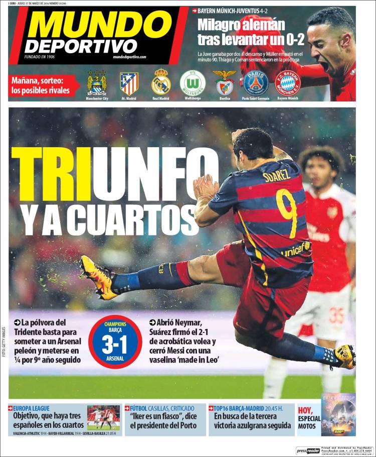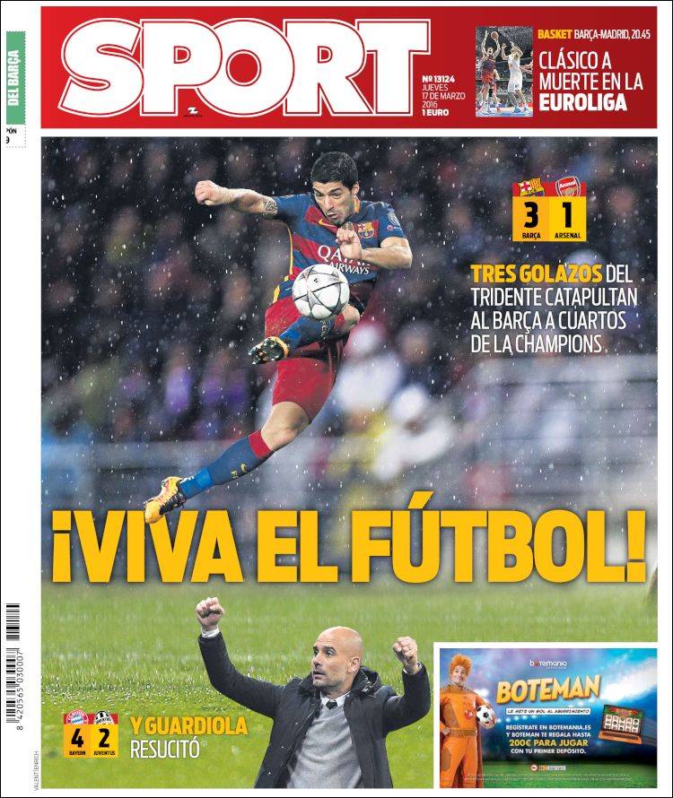 En cuanto a las portadas de lo periódicos deportivos catalanes ( culés hasta la médula) siempre hacen lo mismo: destacar lo de su equipo como la sublimación de la perfección. La cosa es que eso también es lo que intentan "vendernos" en otros medios nacionales (tv, radio...) y sí, parece que lo logran con creces...