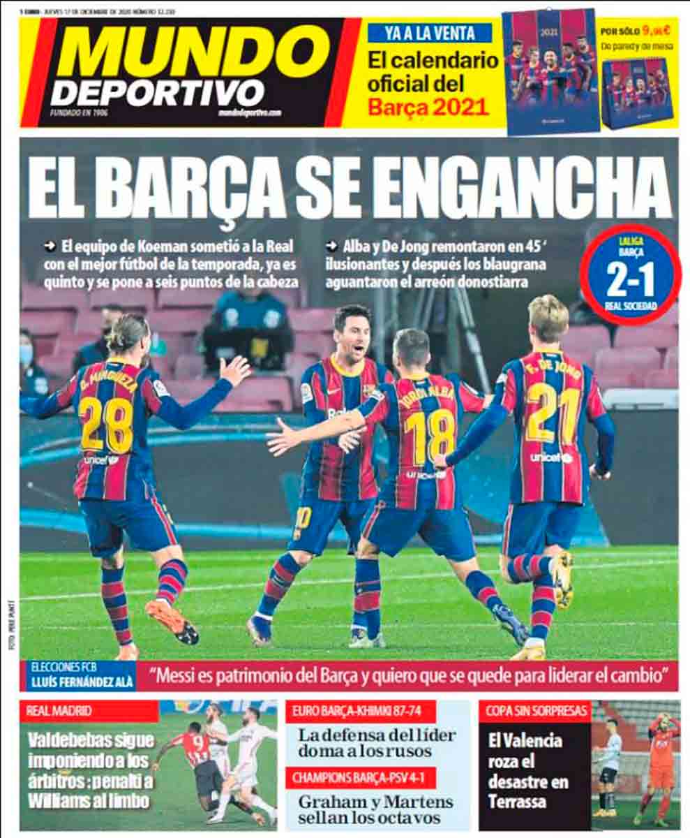 Nada de nada, claro. Tan solo unos exagerados elogios al juego de los culés frente a la escuadra txuri urdin (es verdad que jugaron un muy buen primer tiempo), pero sin tocar ni de soslayo la barrabasada de Alba.