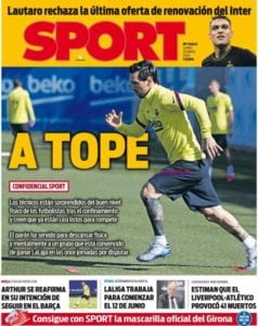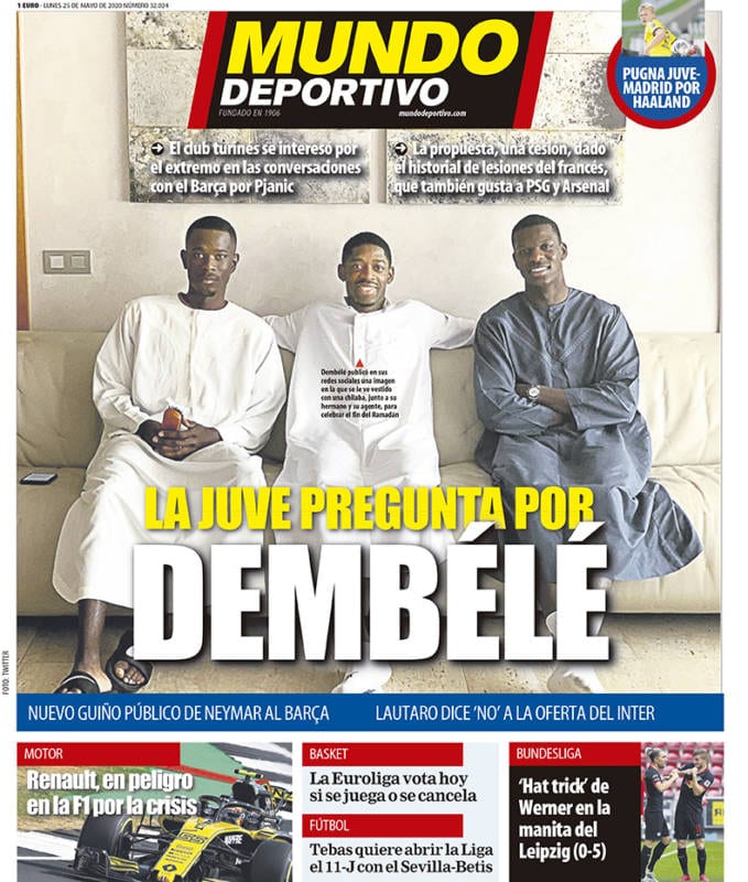 La portada de hoy de Mundo Deportivo está llena de costumbrismo exótico. Dembélé aparece acompañado por dos miembros de su familia, ataviado de forma tradicional, en celebración del fin del ramadán. Lo llamativo es el contraste con el titular: “La Juve pregunta por Dembélé”. La sensación es que la Juve ocupa la posición del espectador y entrevista a los tres agraciados.
