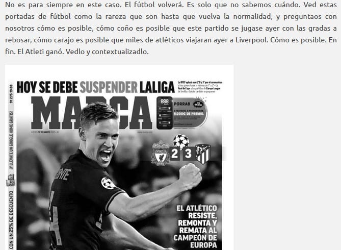 El nivel de culpa que arroja la locura que supuso la celebración de ese partido no es medible. Shame on them.