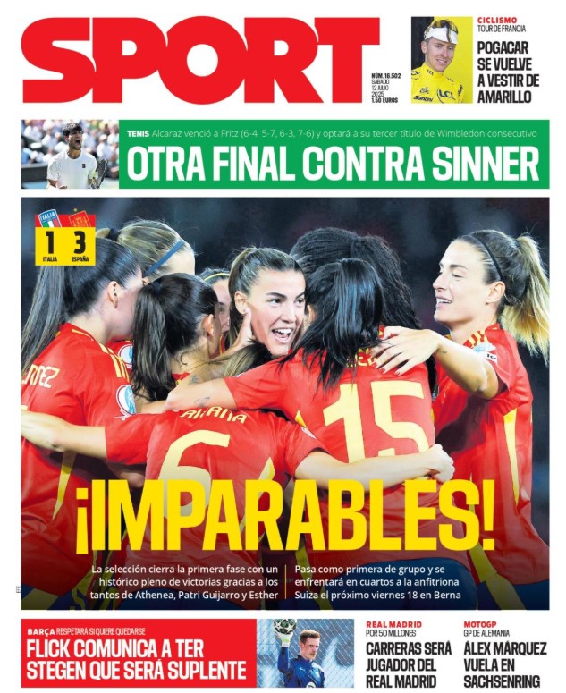 Por su parte, el diario Sport se desmarca de la noticia que copa el resto de portadas y pasa del “Implacable” al “Imparables”: