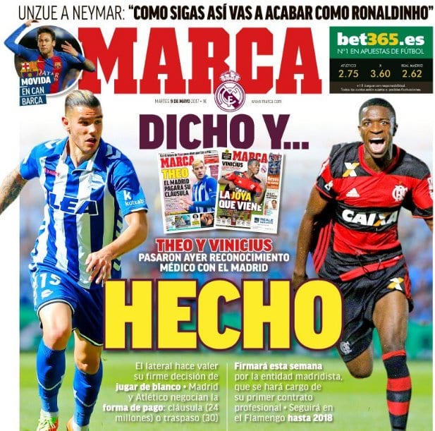 Parece que el Real Madrid ha 'atado' los fichajes de Theo y Vinicius, dos perlas que están llamadas a dominar el futuro en sus respectivas posiciones. Sigue apostando el club blanco por futbolistas jóvenes que den un mayor recorrido a un proyecto con una pinta extraordinaria. ¿Qué piensan en Barcelona de ambas incorporaciones? Pues nada bueno, evidentemente.