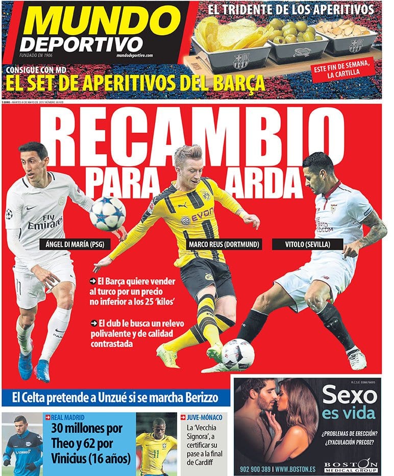 En 'Sport', mientras tanto, juegan la baza del ataque directo a Theo. Poco menos que es un mercenario. De todos es sabido que en el Barcelona juegan gratis y por amor a la entidad y a Catalunya. Allí el dinero es un espejismo y como tal lo utilizaron para fichar a Neymar, lo que pasa es que luego les salió rana y ya tienen una habitación propia en Hacienda. La cuestión es que el chaval del Alavés se decide por los millones y no por vete tú a saber qué. Total, en el Real Madrid sólo va a tener dinero y un proyecto ganador que pisa semifinales de la Champions League con la misma frecuencia que el Barcelona los cuartos de final. Era mucho más atractiva la propuesta culé, cuyo resumen es el siguiente: "En el Barça te ofrecemos valors y te garantizamos victorias siempre y cuando Messi tenga el día".