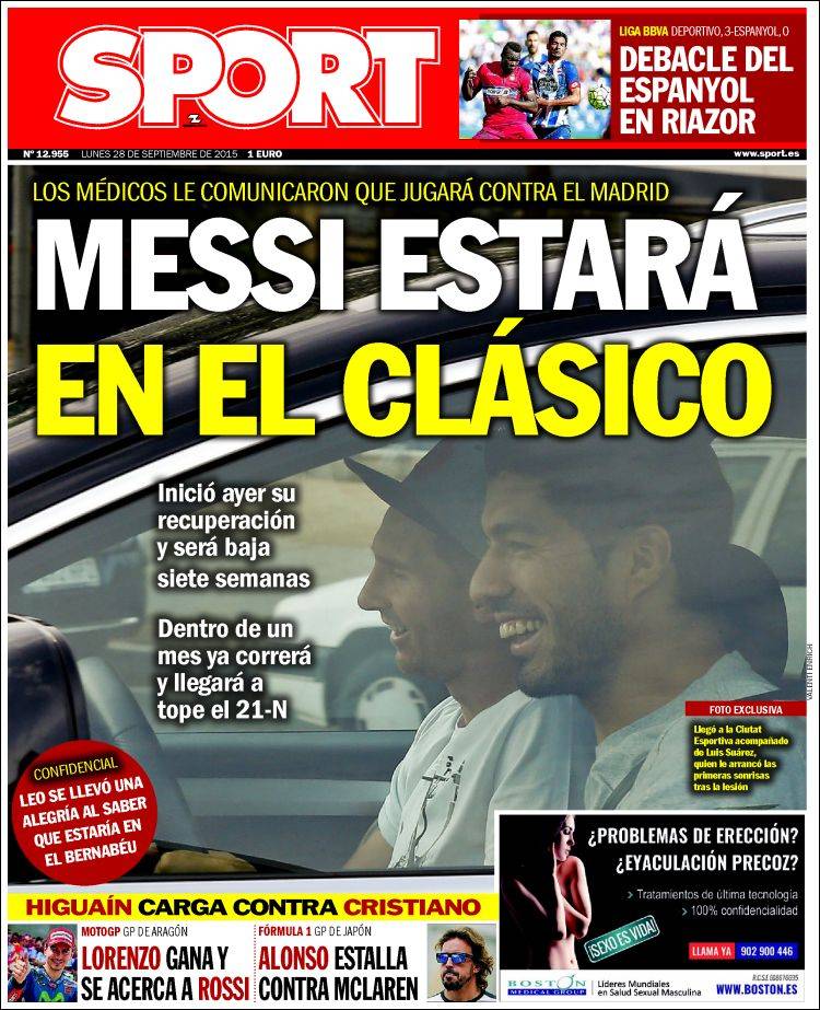 Otro que tiene gol es Messi. Y otra cosa que tiene es el apoyo sin reservas de la prensa deportiva catalana, en franca diferencia con lo que le ocurre a Cristiano en Madrid. Una prueba más de este calor la tenemos hoy con Mundo Deportivo y Sport, más Sportivo que nunca, aunque en realidad más revista Hola que nunca.