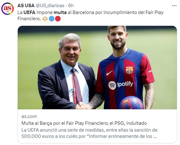 Si la UEFA siendo el Ceferino y el barrigón del Laporta, amigos del alma, le mete un puro al Barsagate de 500.000 pavos por no respetar el Fair Play financiero. Ese mismo pecado en España se pasa por alto.