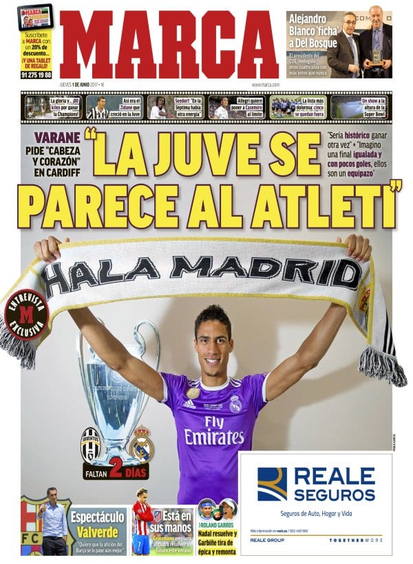 En el as,Matallanas,del atl.de Madrid,entrevista a Redondo y en Radio Marca,en todos estos dias de previa de Champion¿quien ha dirigido las tertulias?Pues un tal Sanchez,que empieza la tertulia diciendo que el gol de Millatovic,fue en clarisimo fuera de juego,esto para empezar,pero a renglon seguido dice que en esta final,la del sabado,espera que el arbitro,expulse de entrada al "criminal y patero"Casemiro.Hoy un segundo tertuliano,era el corresponsal de Marca,en el Barcelona C.F.y digo del Barcelona C F. y no de Barcelona ciudad,por que nunca le he oido hablar de otros clubes,del Español por ejemplo.¿que les parece comentarian estos dos elementos del Madrid?Yo por mi parte no lo se,por que oir esta presentacion,apague la radio y punto.