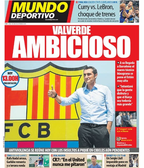 Allá arriba a la derecha, en la Casa del Fútbol precisamente, prefieren dedicar sus portadas a Ernesto, ya inmerso en su conversión a Ernest. Andan tan tocados por allí por lo de Cardiff que con tal de no mentar a la bicha colocan hasta a la NBA en sus primeras planas.