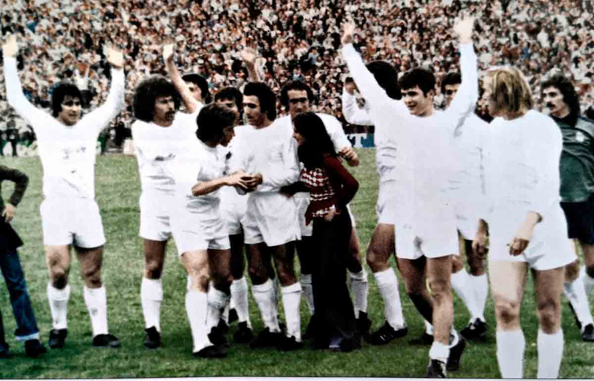 Un año más tarde, nos vamos a la preciosa capital de la Alhambra. Penúltima jornada de Liga. El equipo había sucumbido ante el Barça una semana antes con la habitual polémica incluida, llegaba la segunda oportunidad de cantar el alirón y los del yugoslavo Miljan Miljanic no fallaron. Victoria 1-2, con goles de Pepe Macanás y Paul Breitner. Por cierto, en la celebración en el terreno de juego de Los Cármenes se coló una joven que ha pasado a la posteridad de las fotografías de aquel partido del 9 de mayo de 1976.