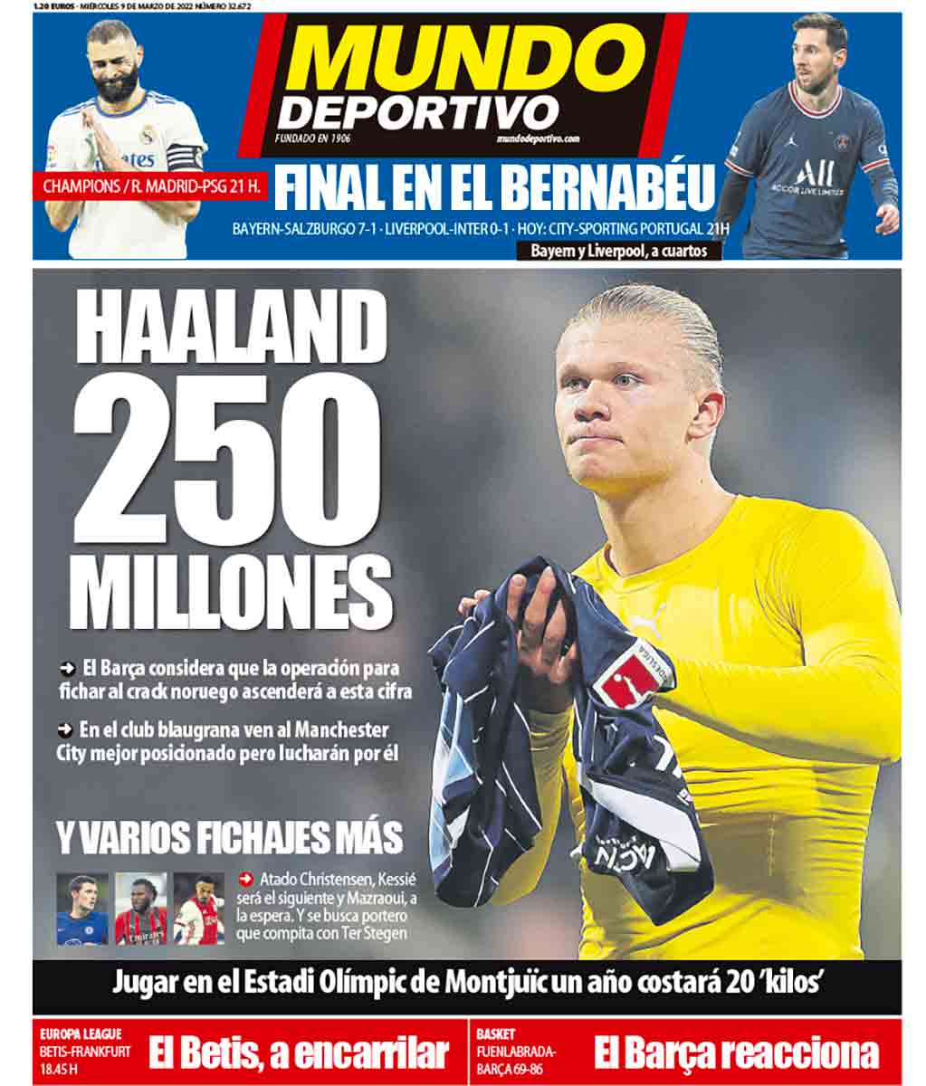 La prensa cataculé, por su parte, se contradice a sí misma respecto a las posibilidades de que Erling Haaland aterrice en Can Barça. Uno de los rotativos afirma que es posible, con gran fanfarria de exclamaciones, mientras el otro reconoce que el City es el destino más probable para el astro noruego. A nosotros nos parece altísimamente improbable el fichaje de Erling por los azulgrana, incluso en caso de que se ejecute lo que la prensa afín ya da por casi hecho, es decir, la traición de Laporta a Florentino firmando con CVC en condiciones (encima) de privilegio inaceptable en relación al resto de los firmantes. Laporta sabrá lo que hace.