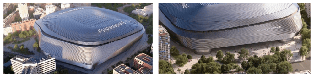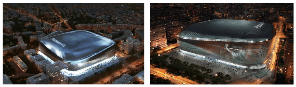 La imagen exterior resultante es potentísima, especialmente si vemos las imágenes virtuales nocturnas. Visualmente el resultado es espectacular y solo con eso ya compensa cualquier otra crítica. Ya merece la pena. Aunque quizá, y esto es algo a título personal, el diseño no muestra demasiados rasgos identificativos con la imagen del Real Madrid. La crítica que sí puede hacerse a gran parte de los nuevos estadios que se están construyendo hoy día (Wanda Metropolitano, Allianz Arena, Tottenham Stadium, Wembley...) es que no parecen ser un símbolo del club al que representan. En el fono, todos ellos podrían servir como sede para cualquier otro club. Y esa falta de mimetización material del lugar con su huésped se palpa también en el nuevo Bernabéu. En arquitectura tiene especial valor que un edificio esté íntimamente relacionado con el lugar en el que está o, en este caso, con la entidad para la que se construye. Y, como se ha dicho, esta crítica es aplicable a casi cualquier estadio construido en la actualidad.