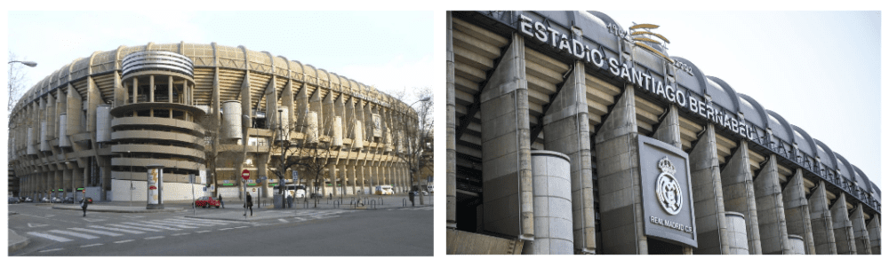 Por último, desde el punto de vista puramente arquitectónico, hay algo muy llamativo. Si hacemos memoria sobre muchos otros estadios clásicos de nuestro país, la imagen que seguramente se nos venga a la mente sea una interior. Las enormes gradas del Camp Nou, la cubierta curva de Anoeta o el videomarcador del Vicente Calderón son aspectos totalmente distintivos cuando pensamos en ellos. Sin embargo, en el Bernabéu, su exterior es casi tan característico como el interior. Las torres y la materialidad del hormigón en todos sus elementos de fachada generan una imagen externa muy singular (ver imágenes 3 y 4), lo cual genera cierto debate sobre cómo tratarla en la reforma proyectada. Sobre este aspecto se reflexionará posteriormente.